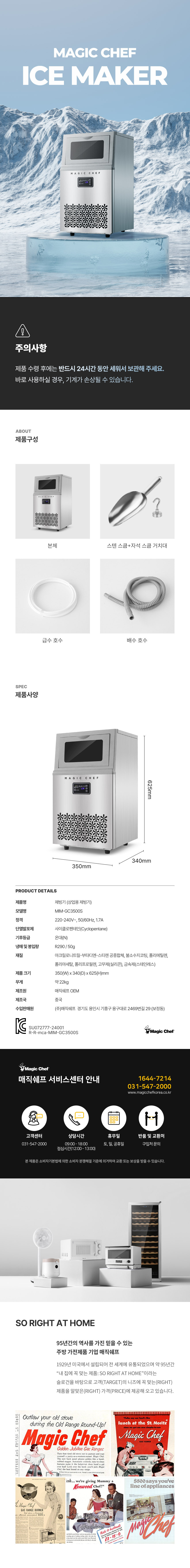 상품명 매직쉐프 상업용 제빙기(35kg) MIM-GC3500S